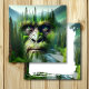 Sasquatch themed leere Karte Eine coole Doppelillustrierung des großen Fußes mit einer doppelten Exposition von Wald, Bergen und Fluss. Hübsche grüne und blaue Farbtöne.