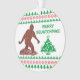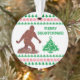 Ce stupide squatch de Noël apportera une touche d'humour à vos célébrations de Noël. Amusant Noël Bigfoot Sasquatch Joyeux Squatchmas personnalisé ornement d'arbre de Noël. L'ornement Bigfoot arrondi peut être customisé pour changer la couleur arrière - plan si vous le souhaitez. Humour de Noël geeky en vert, rouge et blanc.