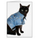 chat noir en blouson en jean bleu, l'air dur