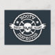 Logo des Agenten "Funny Pirate": "Bikini Island Hintern Inspector." Schädel und Kreuzknochen in einer Sonnenbrille, mit zerklüfteten Fahnen und Seilrücken. Saubere, schablonenförmige Grafik, auf T - Shirt, Karten, Geschenke.
