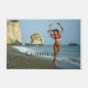 Tanzballet am Strand in einem roten Bikini, um es anzupassen