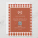 Elegante, rustikale Gingham Hochzeit "Bilder passieren!" Karte mit Coupons Name und Hochzeitdatum, inkl. QR-Code für Foto Gallery - 6 Farben. Feiern Sie Ihre Liebe und begrüßen Sie Ihre Gäste stilvoll mit unserer individuell gestalteten Card! Diese personalisierte QR-Codelkarte, die Teil der eleganten Gingham Wedding Collection ist, verbindet rustikalen Charme mit moderner Funktionalität. Mit einem zeitlosen Gingham-Karo in sechs lebhaften Farben, einem klassischen Wappen mit Monogramm und einer sauberen Typografie ist diese Karte dekorativ und interaktiv. Hochzeiten sind voller wunderbarer Momente, die die Gäste einfangen, aber Paare sehen sie oft nicht alle. Mit dieser QR-Code-Karte können Ihre Gäste ihre Fotos ganz einfach in eine gemeinsame Online-Galerie hochladen und so eine bleibende Sammlung von Erinnerungen aus Ihrem großen Tag erstellen. Passen Sie Ihren Namen, Ihren Hochzeitstag und Ihren persönlichen Galerieslink an, um einen sinnvollen Sake zu erstellen, der perfekt mit der Erholung der Gingham Wedding Suite koordiniert.