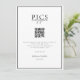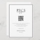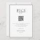Elegant, modern, Handschrift, weiß, Hochzeit "Bilder passieren!" Karte mit Coupons Name und Hochzeitdatum, inkl. QR-Code für Foto Gallery. Feiern Sie Ihre Liebe und begrüßen Sie Ihre Gäste stilvoll mit unserer persönlichen Willkommenskarte! Diese minimale Karte ist nicht nur eine elegante Dekoration für Ihre Hochzeit, sondern auch ein interaktiver Sake, der Ihre Gäste einbindet. So viele Bilder werden von Gästen auf einer Hochzeit gemacht, die das Paar oft nie zu sehen bekommt. Wenn Sie gewollt haben, eine Galerie für Fotos zu erstellen, in der Ihre Gäste die Fotos hochladen können, ist diese Karte für Sie ideal. Es gibt viele Anbieter, wie z.B. Dropbox, wo Sie eine kostenlose Online-Galerie im Voraus erstellen können. Dann können Sie einfach Ihre Karte anpassen, indem Sie Ihren Namen, das Datum und den Link zu Ihrer Foto-Galerie eingeben. So haben Sie etwas ganz Besonderes für Ihren großen Tag.