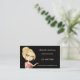 Niedliche Cartoon Visitenkarte mit einer Dame mit einem Buch. Gut für einen Lehrer oder Ersatzlehrer.