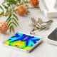 Ein originelles, ungewöhnliches Kaleidoskop-Muster in Blau, Grün und Gelb. Ein lustiges, abstraktes Design.
