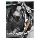König von Broadway ausgebildet von Bill Mott. Foto wurde in Schwarz-Weiß mit seinem goldverlassen Namensschild und seinem in den Farbtönen Grün und Weiß links Trägerhalter aufgenommen. Racehorse Schließung seines Gesichts im Porträtmodus. Fleetphoto