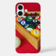 Schwimmbälle in einem Billardholzständer auf rotem Filz.