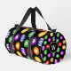 Farbenfrohe Billardtasche für den Billardspieler gemusterte Schwimmbällchen auf schwarz. An einem Ende gibt es einen Monogramm-Bereich, um einen eigenen Anfangsbereich hinzuzufügen