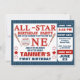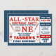 Vous cherchez une invitation au baseball de premier anniversaire en forme de billet ? Ce joli design est peut-être ce que vous cherchez. Une partie du texte fait partie de l'image et ne peut pas être modifiée. Le design comprend deux chauves-souris de baseball, un ballon de baseball et quelques étoiles. Le arrière - plan est bleu avec une fine ligne blanche rayée. Le billet de ce garçon 1er anniversaire invitation est prêt à être personnalisé.