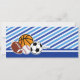 Célébrez votre Baby shower Sport Couples avec notre ticket de baby shower sport all star Invitation. Le design comprend un ballon de football, de baseball, de basket-ball et de rugby/football sur un style de laissez-passer d'entrée d'un stade sportif. Ce design est parfait pour toutes les vedettes sport premier anniversaire, sport 21ème anniversaire, tous les couples sport star douche ou invitation sport jeu.