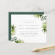 Diese Hochzeitseinladung zu tropischen Themen ist ideal für Sommerfeiern im Freien. Mit Aquarellpalmen-Blätter und Eukalyptusgrün mit Imitaten goldenen Folienstaub. Ihre Hochzeitsinformationen werden mit schicker Minimaltypografie vor weißem Hintergrund angezeigt. Umkehrend zu einem Jäger grünen Hintergrund. Im Rahmen der Budgetauswahl hier auf Zazzle kommen diese Einladungen nicht mit Umschlägen und passen nicht einfach in einen Standard-Umschlag. Die nahe Größe ist A6, aber es wird eine Lücke von ca. 10 cm geben. Wenn es Ihnen an Sicherheit fehlt, können Sie so weit verfügbare A6-Umschläge verwenden. Andernfalls kann dieses Design über das Design Transfer Tool in ein Standardformat (das mit Umschlägen geliefert wird) übertragen werden. Als grober Leitfaden würden zum Zeitpunkt des Schreibens 100 Einladungen zum Haushalt (einschließlich eines Mengenrabatts) etwa 39 Dollar kosten, während 100 Standardeinladungen einschließlich Umschläge etwa 135 Dollar kosten würden. Ihre Meilen können je nach den verfügbaren Promo-Codes von Zazzle, dem standortweiten Verkauf oder den Preisänderungen variieren.
