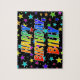 Dieses pulsierende und lustige Jigsaw Puzzle Design zeigt die Meldung "HAPPY BIRTHDAY, BILLY" mit den Buchstaben mit einem farbenfrohen Regenbogenspektrum, inspiriert Farbverlaufsmuster und einem lebendigen Sternenhintergrundmuster. Ein spannendes Rätsel wie dieses könnte verwendet werden, um Geburtstagsgrüße an jemanden namens Billy zu senden. [~Z0000468]