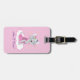Dieses hübsche Kätzchen trägt ein niedliches rosa Kleid und eine Blume! Im Text steht: "Bin ich niedlich?"