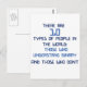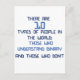 Binärer Witz - computerbezogen. "Es gibt 10 Arten von Menschen auf der Welt, die Binär verstehen, und die, die das nicht verstehen."