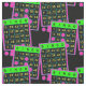 Dieser Entwurf hat Neon farbige Bingokarten und die Raummarkierungen, die auf schwarzem Gewebe gedruckt werden.