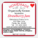 Strawberry Jam ist in Erdbeerrot Typografie geschrieben. Hausgemacht mit Liebe organisch angebaut. Verlass den Wortlaut, ändere den Eintrag Lokal gezüchtet oder lösche ihn. Seedless ist schwarz kursiv geschrieben (behalten oder entfernt). Geben Sie den Markt des Betriebsinhabers oder andere Namen und Kontaktdaten ein. Zutaten und Nettogewicht sind unten aufgelistet, um sie zu personlisieren. Rotes Herz oben vor frisch knusprigem weißem Hintergrund mit tiefer liegendem Erdbeerrahmen. Original Artwork and Design von TamiraZDesign.