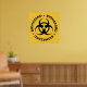 Biogefährdung - Vorsicht gelbes Poster mit schwarzer Schrift und Biogefährdung-Symbol.