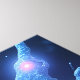 Eine hochdetaillierte 3D-Darstellung einer biolumineszenten Nervenzelle mit einem Blume-ähnlichen Soma mit einem leuchtenden gelben und rosa Kern. Radiante Energiewege erstrecken sich entlang blättriger Falten, während sich komplexe Dendriten in einen dunkelblauen Raum verzweigen, der mit glühenden Buh-Partikeln übersät ist. Die Szene strahlt eine ätherische, lebendige und kinematische Atmosphäre aus.