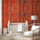 Abstraktes Birken- oder Aspenwaldmuster auf einem roten Hintergrund. Originelle Kunst von Nic Squirrell.