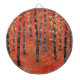 Ein zeitgenössisches Landschaftsbild eines Birken- oder Aspenwaldes in kräftigen Rot-, Orange- und Gelbtönen. Originelle Kunst von Nic Squirrell.