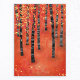 Anstrich eines Birken- oder Aspenwaldes im Herbst. Rotes, orangefarbenes und gelbes, halbabstraktes Waldgebiet.