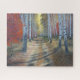Eine alte Schotterstrasse ist von hohen Birkenbäumen umgeben, die mit auffallenden weißen Stämmen und einem pulsierenden Herbstwald bepflanzt sind. Die gefallenen Blätter schaffen einen farbenfrohen Teppichboden, der die warme Atmosphäre der Szene verstärkt. Das ist ein originelles Ölgemälde von 16" x 20" auf gedehnter Leinwand.