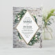 Birch Tree Rustic Woodland Calla Lily Wedding Invitations - dispose d'un arrière - plan rustique d'écorce de bouleau avec des éléments floraux de fougère, calla lily fleurs simples, souffle de bébé, feuilles et plus. La zone de texte est un élégant triangle avec un cadre imprimé en or de fausse feuille.