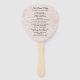 Rustikaler Hochzeitsprogramm Fan in einem Birkenholzbellen-Look, der eine leichte rosa Tönung hat. Personalisieren Sie den Text auf beiden Seiten des Ventilators für Ihren Hochzeitstag.