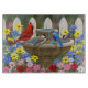 Eine Frühlingssonne mit bunten Vögeln und Blume rund um einen hübschen Wasserbrunnen Vogelbad.