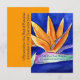 Der lebendige Ventilator, wie die Krone der orangefarbenen Blüten eines Paradiesvogels, steht im Kontrast zum tiefgründigen, königsblauen Hintergrund. Die Aquarellmalerei bietet einen Ausblick auf die paradiesische Blume. Die Blume ist in einer Aquarellmalerei gehalten. Diese Blume ist bekannt als die Crane-Blume in Südafrika. Personalisieren Sie die Einladungskarten für den Vogel des Paradieses oder laden Sie mit eigenen Texten und Bildern ein, indem Sie auf den Button "Anpassen" klicken, um einen besonderen Bird of Paradise Blume zu erstellen!