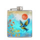 Dieses wunderschöne Design zeigt einen blauen und goldenen Vogel, der eine Landung auf einem goldenen Baum mit einem schönen Himmel mit vielen blauen Farben und einer kühlen orangen Sonne.