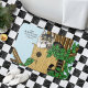 Niedliche Tabby Katze sitzend auf einem Vogelhaus sehr glücklich eigenen haben sein eigenes Bed & Breakfast!