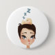 Artistis Poster mit einem Mädchen und einem Vogel, der auf ihrem Kopf schläft. Ein schönes Mädchen mit kurzem Haarschnitt, das auf einen gelben Birdie schaute, der ein Nickerchen nimmt. Niedliche Kinderbuchillustrierung, Druck für Kinder.