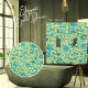 Schöne Keramik ziehen mit Vögeln, Blumen in tiefkönigsblau unterlegt in gelb (Badehandtuch-Set und Badematte auch in mit Blumen, Vögeln, Motive in brillanten Schatten gelb in Aqua und Bräune geschnitten). Einzigartiges, lebendiges Design, ideal für Gastbäder oder für besondere Anlässe Hochzeiten, Duschen etc. Wir haben eine große Auswahl an Handtüchern, von Klassikern über eklektisch bis hin zu Suiten.