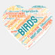 Das farbenfrohe Design mit den Namen von Vogelfamilien. Herzgeformter Druck, das perfekte Geschenk für Männer, Frauen und Kinder, die Vögel und Vogelbeobachtung lieben.