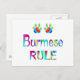 Burmische Katzenliebhaber werden dieses farbenfrohe Design mit den Katzenpaws und den Worten Burmese Rule genießen.