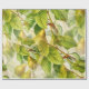 Birnen und grüne Blätter auf weißem Hintergrund.