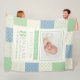 Feiern Sie Ihre kleine Ankunft mit diesem personalisierten Foto Geburtsstunde Fleece Babydecke. Es ist aus sanfter, gemütlicher Fleece gebaut und weist einen quilt-artigen Stil in schaumgrün und blau auf. Geben Sie den Namen, das Geburtsdatum, das Gewicht, die Länge und die Geburtszeit Ihres Babys zu einem so bedeutsamen wie bequemen Pfand. Passen Sie mit Ihrem Lieblings-Foto ein einzigartiges Design an, das für das Kinderzimmer perfekt ist. Der leichte, aber warme Stoff eignet sich ideal zum Schnuppern, zum Bummeln oder als wertvolle Erinnerung. Diese individuelle Babydecke ist auch ein nachdenkliches Geschenk für neue Eltern, Babyduschen oder Taufen.