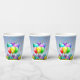 Viele Ballons und Konfetti auf bunten Geburtstagskuppen für Kinder.