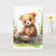Niedlicher Bärenkub in Aquarellfarbe, der auf einem Baumstamm zum Geburtstag sitzt. Der Insider-Text kann bearbeitet werden.