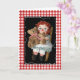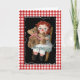 Rag-Puppe mit einem Teddybär in rot-weißem Gingham-Rahmen und Stiefeln für Brithday