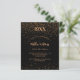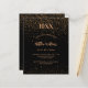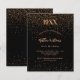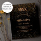 Modernes, elegantes und einladendes Hotel. Ein schwarzer Hintergrund mit goldenem Konfetti. Personalisieren und fügen Sie das Geburtsjahr, den Namen und die Details hinzu. 1 Blatt = 1 Einladung mit Druckkante bis Kante.
