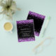 Bitte beachten Sie, dass diese Einladung auf Flyer Papier und sehr dünn ist. Umschläge sind nicht enthalten. Für dickere Einladungen (gleiche Gestaltung) besuchen Sie bitte unseren Shop. Eine moderne, stilvolle und glamouröse Einladung für eine 21. Geburtstagsfeier (oder jedes Alter). Ein schwarzer Hintergrund mit lila Imitaten Glitzer Staub. Der Name ist mit einem modernen handgeschriebenen Stilskript geschrieben. Personalisieren Sie Ihre Party-Daten und fügen Sie sie hinzu.