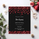 Modernes, elegantes und einladendes Hotel. Ein schwarzer Hintergrund mit roten Konfetti. Personalisieren und fügen Sie einen Namen und Details. Weißer Text. 1 Blatt = 1 Einladung mit Druckkante bis Kante.