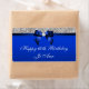 Hübsche königsblaue und silberne Wasseretiketten aller Altersgruppen mit einem flachen Bild silberner Sequenzen und königsblauer Bogen mit weißem Text.