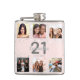 Birthday Blush Silber Glitzer Foto Collage Name Flachmann