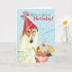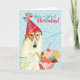 Glückliche Geburtstagsgrüße mit diesem niedlichen Design mit einem glücklichen, Party-Hut-Tragen Borzoi mit einem Eis sundae. Text kann leicht geändert werden; klicken Sie einfach auf Anpassen.