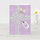 Weißer, schlichter Bogen mit weißer Farbe und Geschenkmarke auf weißem und lila Gingham-Muster. Alle Texte können geändert werden.