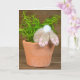 Hasen-Hintern in Blume-Topf aus Ton mit grüner Farn-Pflanze zum allgemeinen Geburtstag