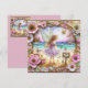 Die Karte bietet eine süß-rosa Fee an einem Strand, der von Schmetterlingen, Insekten und Blume umgeben ist. Der Gruß lautet "Happy Birthday". Die Rückseite hat eine kleine Version des vorderen Bildes und viel Platz, um eine Nachricht zu schreiben. AI Bing hat bei der Erstellung der Karte geholfen.